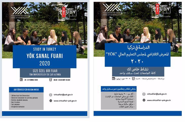Üniversitemizin de fuar alanında (5. Hall) yer alacağı "Study in Turkey YÖK Sanal Fuarı 2020'' fuarına katılımlarınızdan onur duyarız.